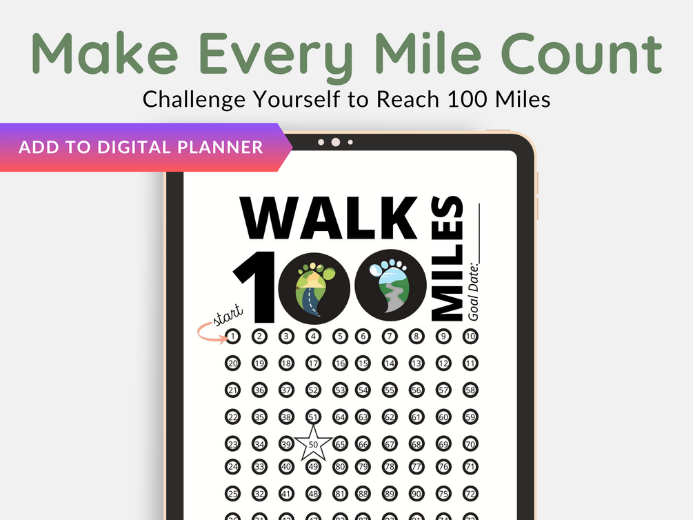 100 Mile Walking Challenge Tracker | A4, A5, Letter & Half Letter Sizes