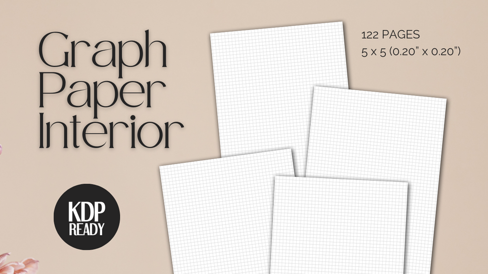This 8.5x11" Graph Paper Notebook interior file, designed for self-publishing on Amazon KDP, includes 122 pages of 5 x 5 graph paper with squares measuring 0.20” x 0.20”. Ready for commercial use, the PDF file is set to bleed and can be easily uploaded to KDP.