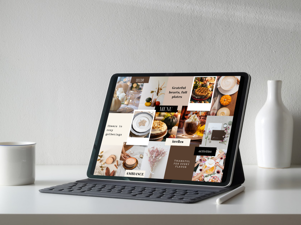 Whether you're planning decor, menu, or party vibes, this template helps you visualize it all in one place. Capture your inspiration and create a stunning Thanksgiving vision board with ease!
